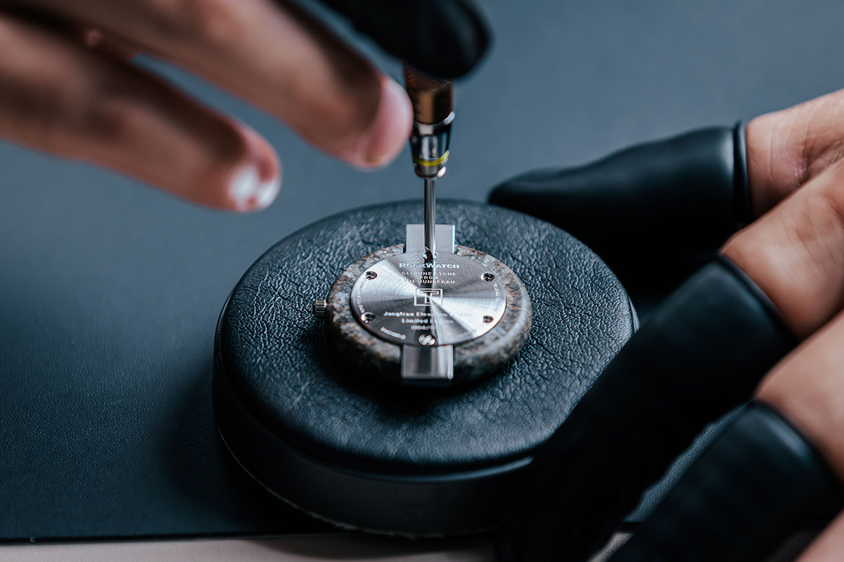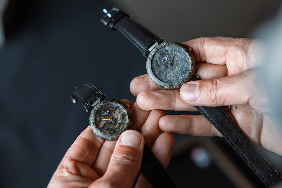 Del resto questa caratteristica di unicità del singolo esemplare si riscontra anche nel nuovo RockWatch, nonostante il granito con cui è fatta la cassa provenga interamente dallo Jungfrau. In quanto partner della locale società ferroviaria, Tissot ha infatti potuto mettere le mani sui blocchi di roccia estratti dalla montagna durante i lavori di risistemazione dei tunnel dello Jungfraubahn. Oggi come ieri, la lavorazione della pietra comporta una serie di passaggi e accorgimenti, ma l’esperienza accumulata “sul campo” da Tissot facilita le cose.