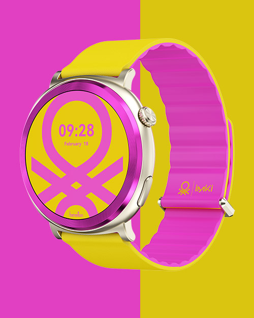 Geometrie decise e attitudine urban, gioca la carta del design squadrato con display Amoled da 1.78″ e una texture scanalata sul cinturino magnetico che sa di sportivo-chic. Quattro combo cromatiche Benetton – Urban Power rosso-blu per ribelli, Lemon Rose giallo-rosa per ottimisti… – vestono una cassa in lega di zinco che monitora SpO2, battito e stress. Chiamate Bluetooth dal polso, 100 watch face e autonomia di settimane. Per chi ama gli angoli retti e il carattere geometrico. 79,99 euro.
