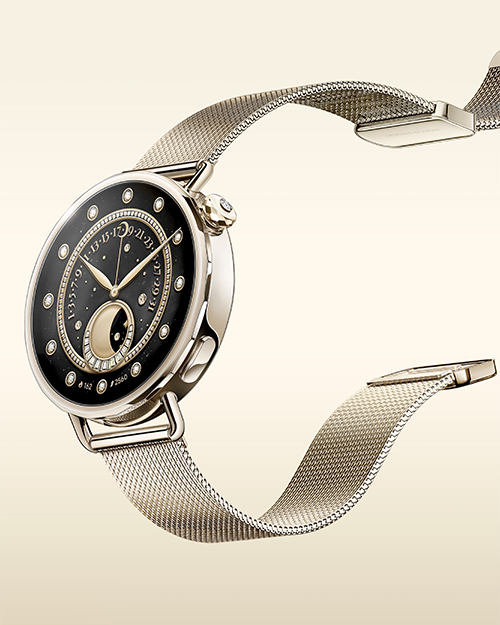 Design premium e tecnologia avanzata. Disponibile con cassa in metallo da 41 o 45 mm di diametro, questo smarwatch si distingue per le finiture “Lunar Gold” e il cinturino in pelle, torcia Led integrata e nuove funzioni: dal coach sportivo che adatta gli allenamenti in base alle prestazioni, all’analisi del cronotipo che identifica il ritmo sonno-veglia individuale. Completo di chiamate Bluetooth, comandi vocali e un’autonomia dichiarata di 12 giorni, è essenziale e funzionale. Per lo sport come per la vita quotidiana. Da 549,99 euro.
