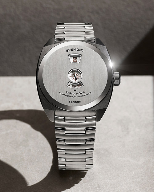 Dopo il successo della versione in bronzo, l’orologio à guichet del Marchio inglese torna in acciaio 904L, interpretato dal designer di Savile Row Kouadio Amany. Mantiene comunque immutata l’ispirazione militare, la cassa “chiusa” a cuscino da 38 mm, il display con le finestrelle delle ore e dei minuti, e l’indicazione dei piccoli secondi ispirata a una bussola. Il movimento automatico, calibro BC634 sviluppato in collaborazione con Sellita, permette un salto istantaneo delle ore in meno di un decimo di secondo. Con il cinturino in Nabuk marrone costa 5.050 euro, con il bracciale in acciaio 5.350 euro.