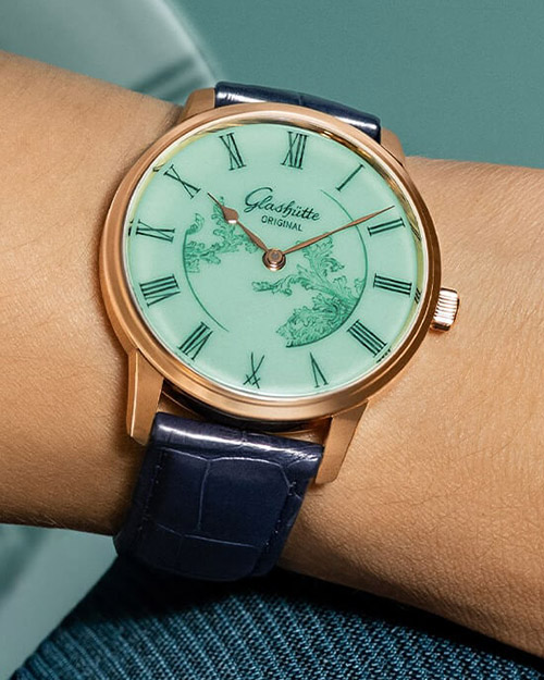 Dalla collaborazione con la storica Manifattura di Dresda – appena siglata, ma dalla logica inappuntabile -, si distingue per il quadrante in porcellana rigorosamente realizzato e dipinto a mano. In tre versioni: coolor avorio o verde celadon, con decoro Mystic Maison, in edizione limitata di 150 esemplari; oppure, in 8 esemplari, con motivo floreale che riunisce i soggetti tipici della produzione di Meissen, realizzato a collage. Cassa di 40 mm in oro rosso e movimento di manifattura, Calibro 36, a carica automatica. Da 30.700 euro.