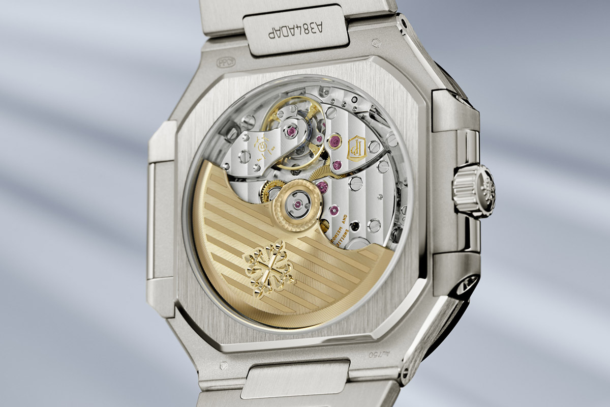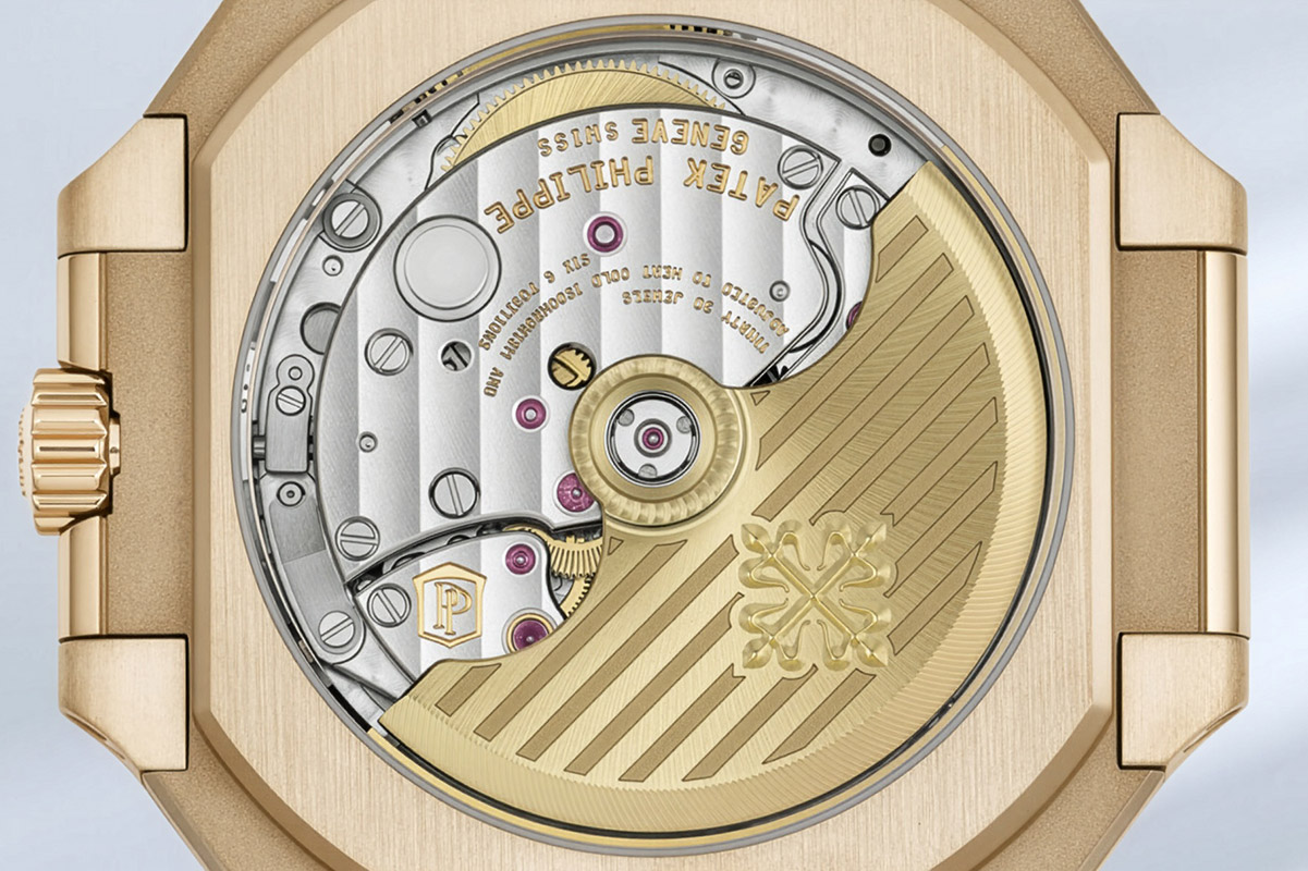 La carica automatica è affidata a una massa oscillante in oro 21 carati sulla quale viene riproposto lo stesso motivo orizzontale che, del Cubitus (e del Nautilus), caratterizza il quadrante. L’autonomia è quella consueta di 45 ore. Fra le sue peculiarità, lo “stop secondi”. Estraendo la corona in posizione 2, quella più esterna per intenderci, la lancetta dei secondi si arresta per consentire una messa all’ora estremamente precisa. Superlative le finiture, secondo gli standard del Sigillo Patek Philippe.