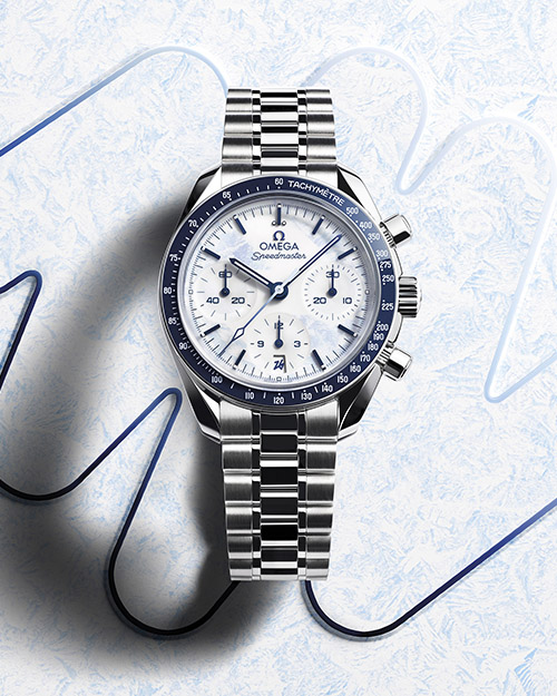 Uscito ieri, a 100 giorni esatti dall’inaugurazione dei Giochi Olimpici Invernali di Milano Cortina 2026, è il primo della serie dedicata alla manifestazione in cui il Marchio sarà – come sempre – cronometrista ufficiale. In acciaio, ha la cassa di 38 mm con lunetta in ceramica, il quadrante laccato effetto ghiaccio, il fondello personalizzato e il bracciale con sistema brevettato di regolazione fine. Il movimento è il calibro Co-Axial 3330 con ruota a colonne, spirale in silicio, secondi continui e certificato ufficiale di cronometro del Cosc. Nel datario si trova il logo dell’evento. 6.800 euro.