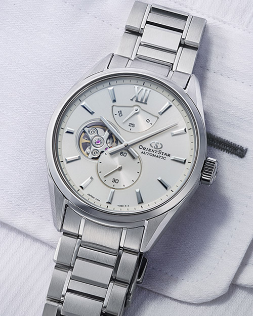 Un eclettico dress watch – anzi, due – che punta tutto sul lay-out multilivello, in cui spiccano l’apertura sul bilanciere e le indicazioni dei piccoli secondi e dell’autonomia residua. Realizzato in acciaio, ha la cassa di 40 mm ed è alimentato dal calibro F7F44 realizzato “in casa” da Seiko (ovviamente di fabbricazione giapponese). Esiste con quadrante argenté oppure blu, più notturno, sempre dal motivo radiale e dalla ricca finitura lucida ottenuta con uno spesso rivestimento trasparente. In vendita sull’e-commerce tedesco del Marchio, 1.114,99 euro.