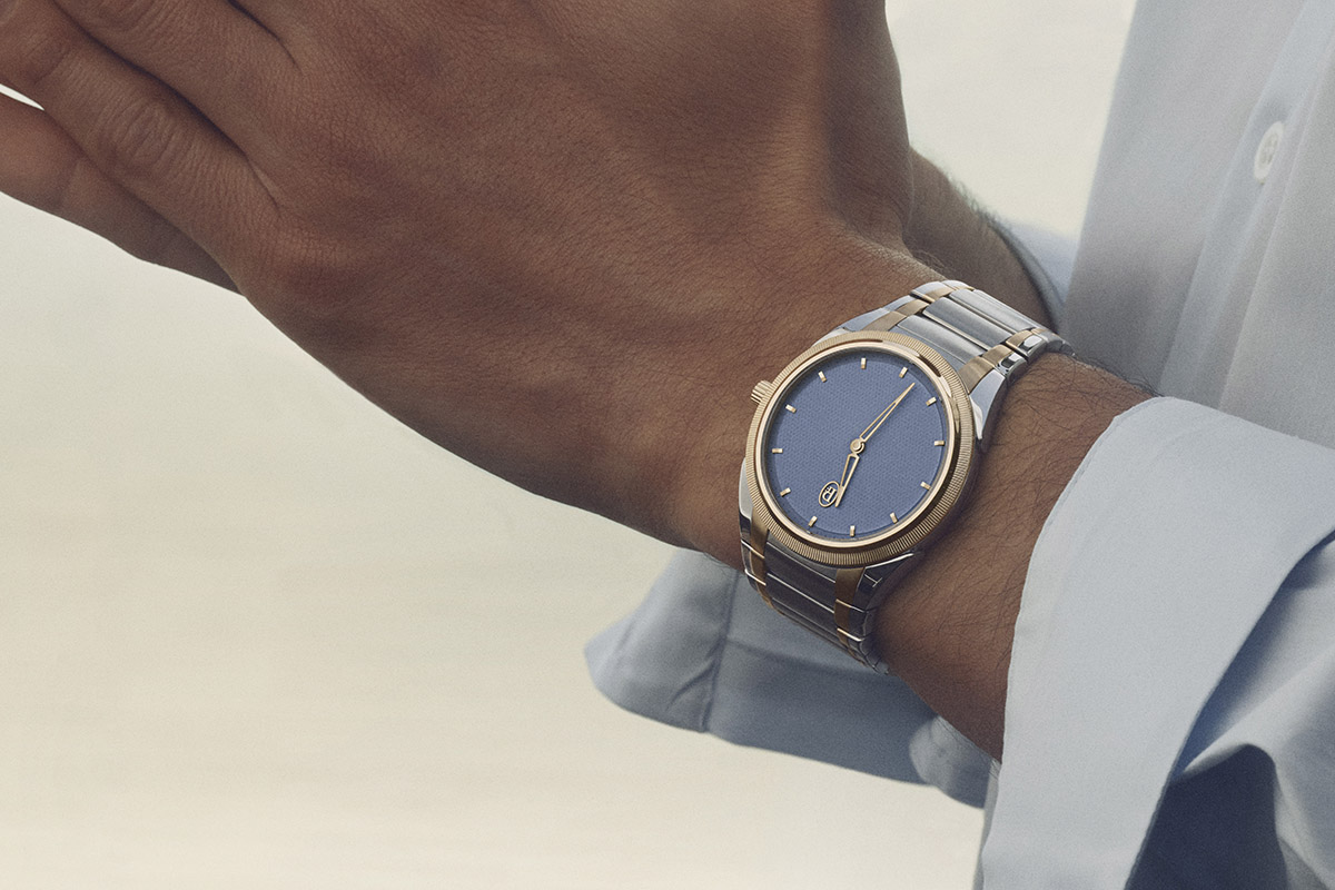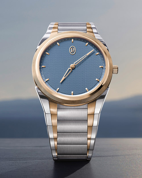 PARMIGIANI FLEURIER Tonda PF Micro-Rotor Steel & Rose Gold Nuova referenza della riuscitissima collezione, affianca all’abbinamento acciaio & oro rosa un quadrante Stone Blue, vibrante di riflessi grazie al guilloché Grain d’Orge. Quanto al resto, tutto rimane com’era: la cassa di 40 mm di diametro, sottile 7,8 mm, la lunetta zigrinata, il bel bracciale rastremato… Il movimento è sempre il calibro PF703, di manifattura, con micro-rotore decentrato in oro rosa e finiture superlative. 28.200 franchi svizzeri.