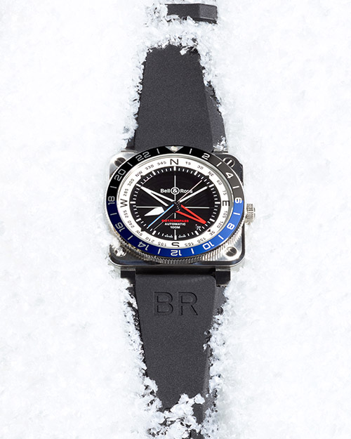 Una bussola da polso, con tanto di gradi e punti cardinali, leggibile tramite la lancetta rossa delle ore. Ma anche un secondo fuso orario, grazie alla lunetta girevole bidirezionale con le 24 ore e la funzione giorno/notte. La cassa carré misura 42 mm di lato ed è impermeabile fino a 10 bar, il movimento automatico è il calibro BR-CAL. 303 (base Eta 2893 o Sellita equivalente), il cinturino in caucciù. In pratica, un orologio “da navigazione”, in senso lato. Edizione limitata di 500 esemplari, 4.900 euro.