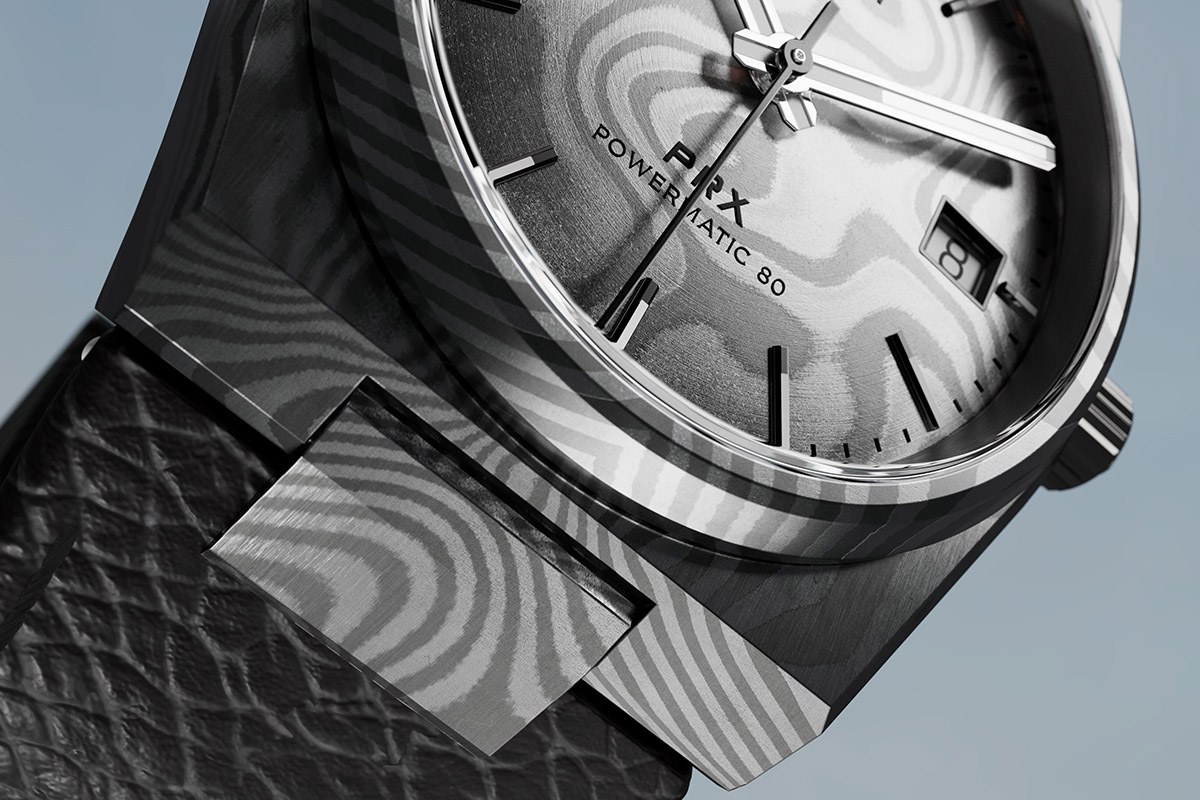 Nel dettaglio, il PRX Damascus presenta cassa e quadrante “marmorizzati”, che regalano riflessi e flash luminosi sempre diversi. Lancette e indici a bastone sono rivestiti di Super-LumiNova a emissione verde, mentre la lancetta dei secondi è nera per offrire maggiore visibilità. Nero è anche il cinturino in pelle, agganciato alla carrure dalle anse centrali. Il prezzo è di 1.075 euro.