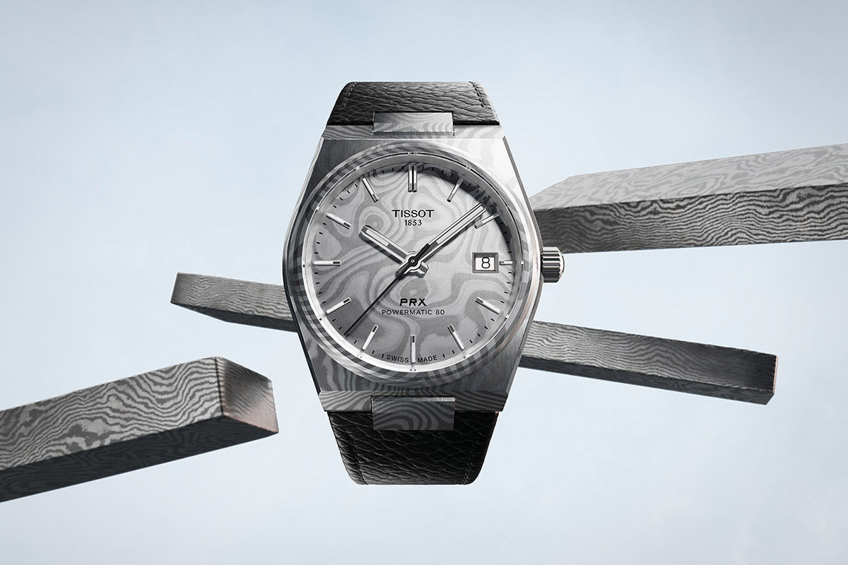 Non so se lo ricordate. A proposito del RockWatch, parlavamo del gusto per la sperimentazione materica che da sempre è un tratto caratteristico di Tissot. Bene: potremmo fare lo stesso discorso riguardo ai nuovi PRX Damascus e PRX Titanium, rispettivamente in acciaio Damasco e in titanio. Non perché si tratti di materiali sperimentali, s’intende: non sono affatto paragonabili al granito del RockWatch o alla fibra di vetro del Sidéral di ieri. Piuttosto – proprio come il carbonio forgiato che oggi si trova sia nel Sideral che nella collezione PRX – perché rispondono allo stesso gusto per la ricerca (o forse dovrei dire ricercatezza) che fa parte della storia di Tissot. Alla stessa propensione per ciò che è nuovo e singolare, alla stessa volontà di proporre qualcosa di particolare. Come appunto le leghe dell’acciaio Damasco e del titanio.