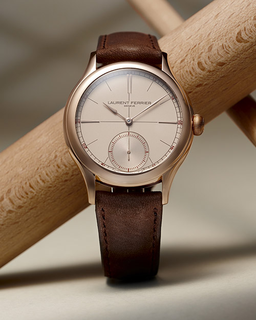 Nuova versione di un modello nato 5 anni fa, è improntato proprio sull’equilibrio più “classico, lontano da mode e tendenze. La cassa (40 mm) in oro rosso 5N ricorda come di consueto un ciottolo levigato dall’acqua, priva com’è di asperità e angoli vivi. La calda tonalità del quadrante opalino è completata da una minuteria a chemin de fer marrone, con croce centrale, lancette Assegai in oro, indici stampati e il contatore dei piccoli secondi di grande formato. Il movimento, calibro LF116.01 a carica manuale, è dotato del celebre cricchetto a lunga lama per la ricarica, 80 ore di autonomia e superbe finiture. 43mila franchi svizzeri (tasse escluse).