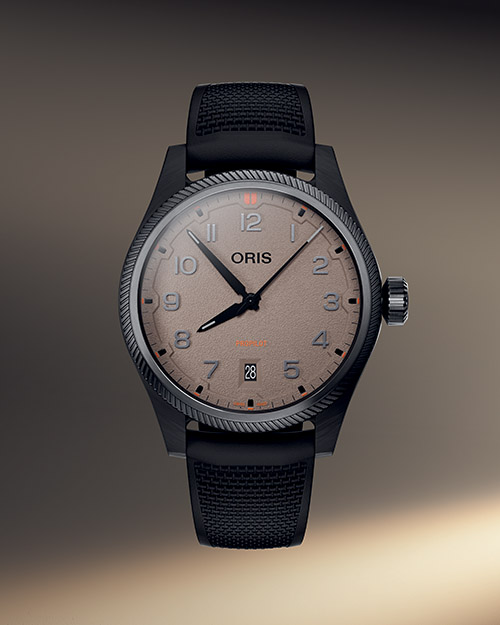 Ispirato ai paesaggi delle dune a perdita d’occhio, come dichiara la Maison, presenta la cassa (41 mm) ridisegnata, con linee più nette e marcate. Ultraleggera, è realizzata in fibra di carbonio con una tecnica di manifattura additiva e stampaggio, perfezionata negli anni dagli ingegneri Oris. Lunetta, corona e fondello sono invece in acciaio Pvd grigio, mentre il quadrante sand beige riprende il colore e la texture della sabbia nella finitura grené. Il movimento automatico è il calibro Oris 733 (base Sellita SW200-1 con rotore personalizzato). In vendita da gennaio 2026, 2.850 euro.
