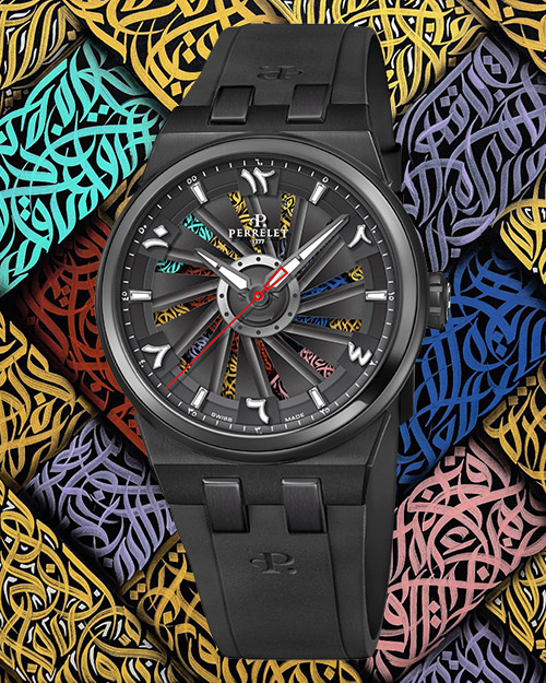 In occasione della Dubai Watch Week, la storica Maison collabora con uno degli artisti più quotati degli Emirati, noto per le mega-installazioni (calligraffiti, li chiamano gli addetti ai lavori) di grande impatto sul paesaggio urbano. In questo caso ha realizzato un’opera ad hoc, ben visibile durante la rotazione della turbine: di dimensioni contenute, è ispirata al vimini, ricreato con scritte e colori che creano particolari rilievi e profondità. La cassa (41 mm) in titanio grado 2 Dlc nero ospita un movimento automatico di manifattura, il calibro P-331-MH, certificato Chronofiable® e Cosc. L’orologio, ora in pre-ordine, sarà in consegna ad aprile 2026. 5.180 franchi svizzeri.