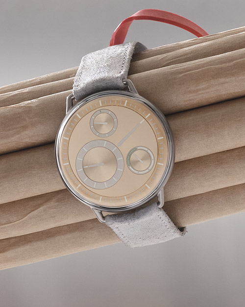 Versione essenziale e “pura” (perché di forma rotonda) dell’omonima collezione, è impreziosito dal trattamento in oro rosa 4N del quadrante convesso, dalla finitura soleil. Come di consueto, i tre dischi a filo rotanti riportano ore, secondi e giorno della settimana, con indicazioni incise e luminescenti, ma dalla lavorazione guilloché, che enfatizza l’aspetto caldo e “organico”. Ormai celebre il movimento, calibro ETA 2892 a carica automatica, reso unico dal modulo ROCS 1.3 (Ressence Orbital Convex System). 18.150 franchi svizzeri (tasse escluse).