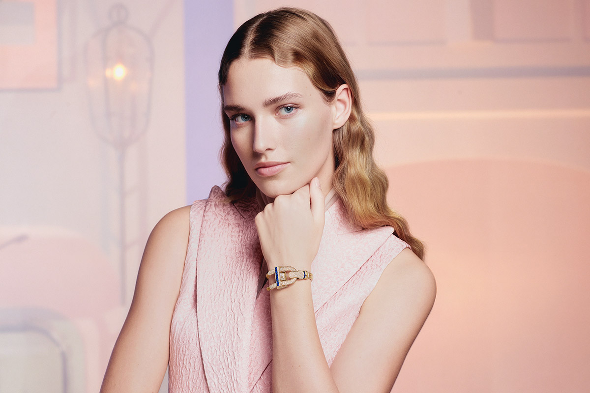 Molto del suo fascino lo deve alla forma particolarissima, contraddistinta da un’ansa splendente che lo ha fatto subito paragonare a un lucchetto prezioso, simbolo misterioso di amor cortese o di sublime esclusività. La prima, storica versione apparve in oro giallo: intorno all’ansa si inseriva il fermaglio di una doppia catena a maglia serpentina, che carezzava il polso muliebre con una vestibilità dolce e morbida. Tutte caratteristiche immutate nel corso degli anni.