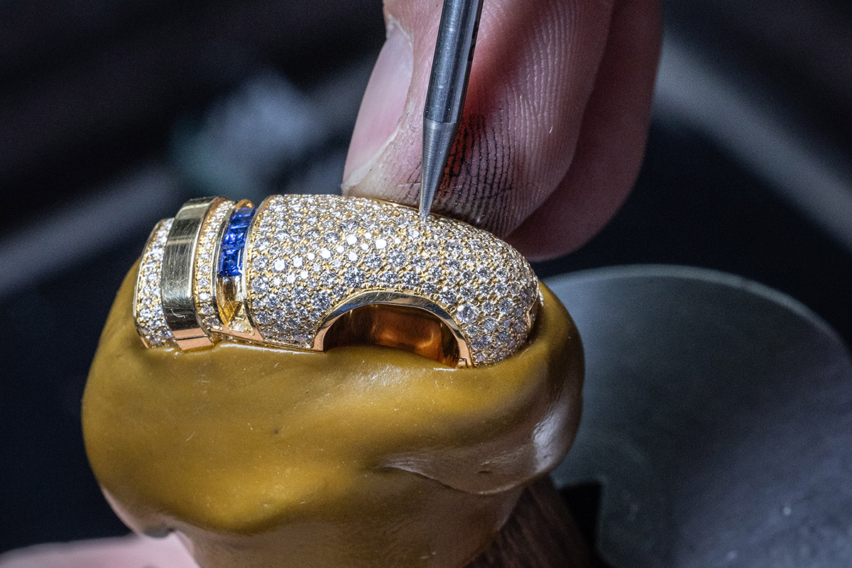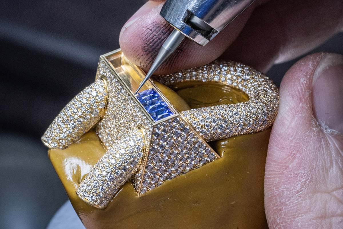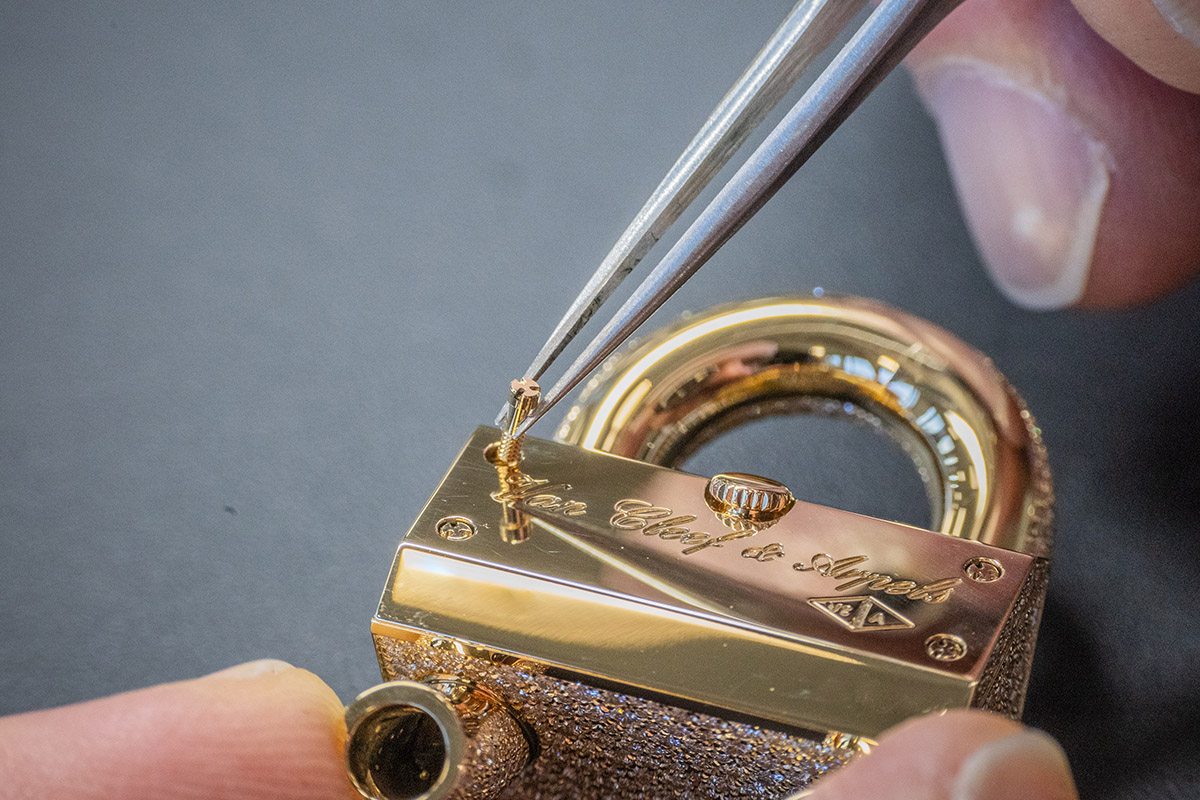 Dal 1936 il Cadenas è stato ulteriormente ingentilito con le pietre preziose: le prime furono una fila di zaffiri o rubini taglio calibré a far risaltare la parte superiore della cassa e il verso del fermaglio. A partire dal 1938, ancora, conobbe l’incastonatura di diamanti e, dal 1943, di smeraldi. Non ci sono limiti pur di soddisfare il desiderio di vedere questo capolavoro tempestato dalle migliori gemme del mondo.