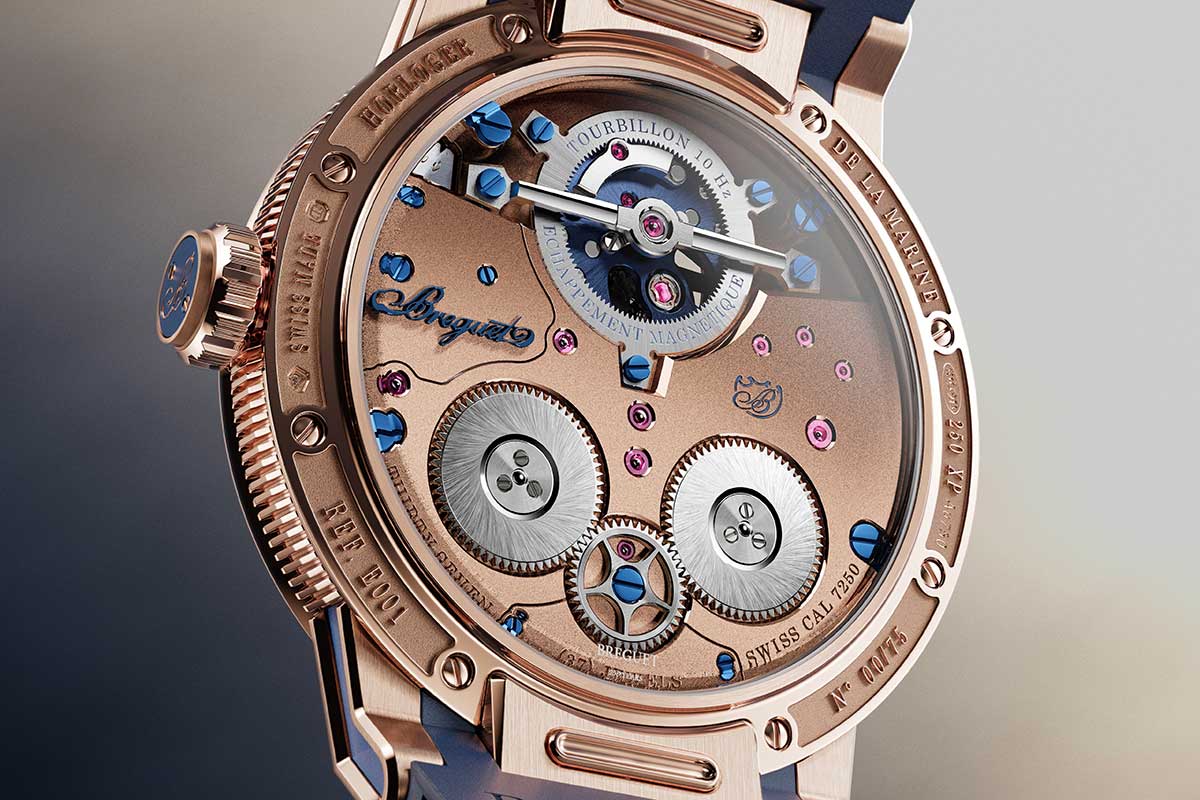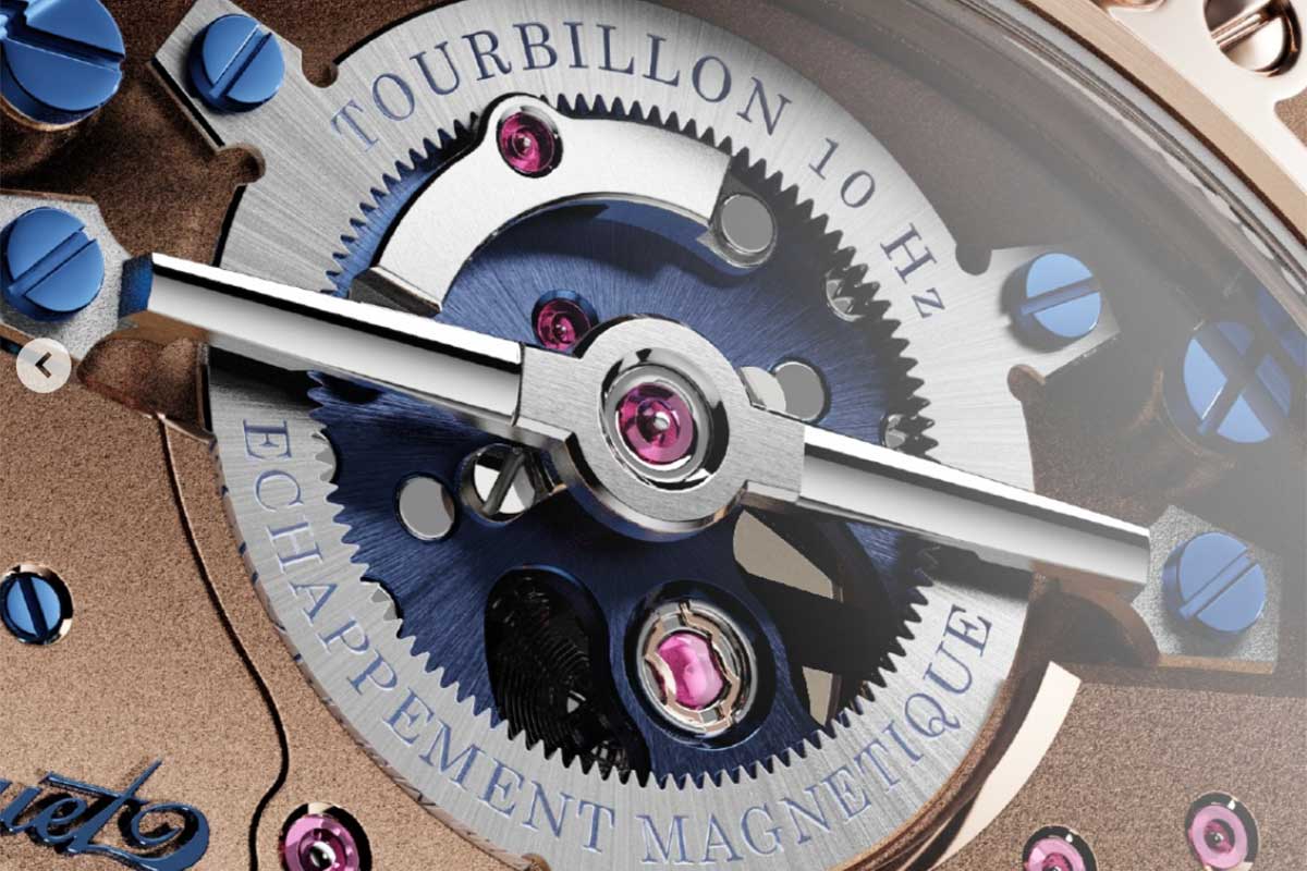 Giusto per andare dritti al sodo, ciò che caratterizza da un punto di vista ingegneristico e orologiero il Breguet Expérimentale 1 è il tourbillon ad alta frequenza da 10 Hz con scappamento magnetico a forza costante. Una soluzione tecnica che si avvale di quanto Breguet aveva già applicato nel Classique Chronométrie 7727 e nel Classique 7225 e che trasforma uno dei nemici giurati dell’orologeria meccanica, il magnetismo, in un alleato insospettabile nella ricerca della precisione.
