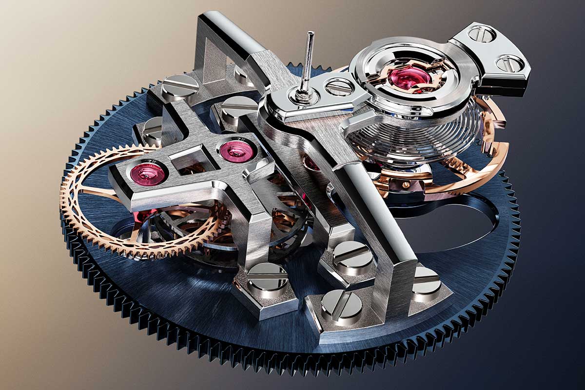 Una ruota di arresto intermedia, posizionata tra le due ruote di scappamento con binario magnetico, preserva il sistema da salti indesiderati. La maggior parte degli altri componenti del tourbillon, poi, non è magnetica: così non si creano interferenze che rischiano di compromettere il regolare funzionamento del sistema.