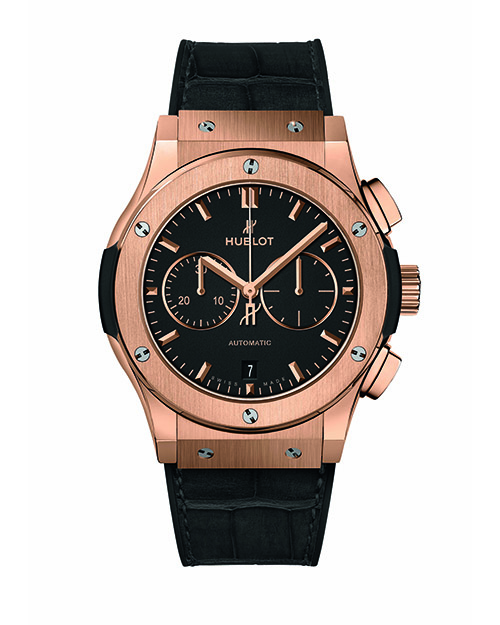 Hublot Classic Fusion Chronograph King Gold. Cassa (42 mm) in oro rosso, lucida e satinata. Movimento meccanico a carica automatica, calibroHUB1153, cronografo con ruota a colonne e secondi continui.