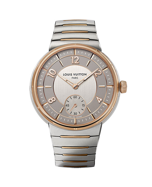 Louis Vuitton Tambour. Cassa (40 mm) e bracciale in acciaio e oro rosa. Movimento meccanico a carica autoamtica, calibro LFT023, con piccoli secondi; certificato cronometro dal Geneva Observatory.