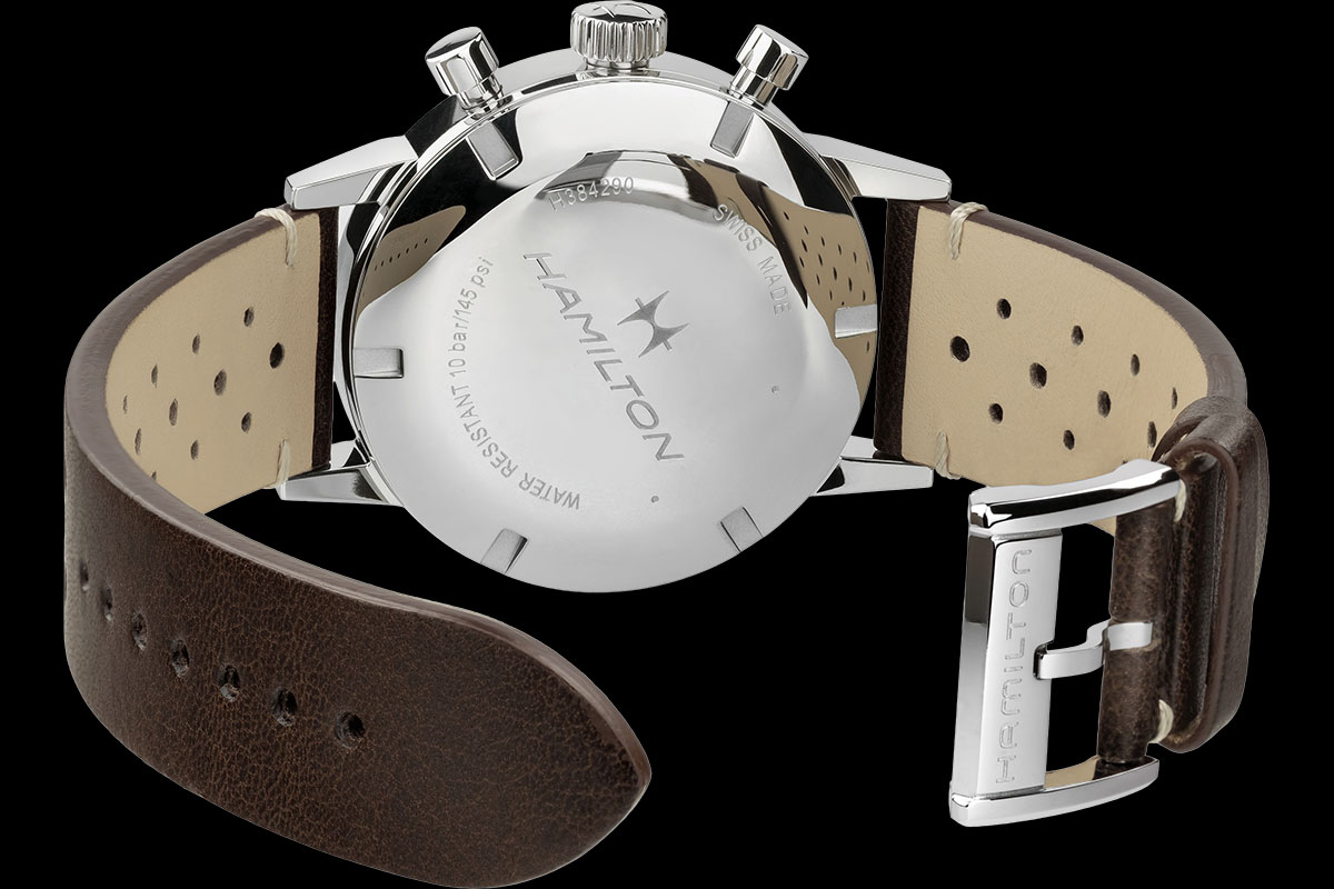 Importante è il movimento. Anche i nuovi American Classic Chronograph H montano il calibro H-51, a carica manuale (come indica la lettera H del nome, che sta per Handwind). Si basa sul calibro H-31, privo però dell’automatismo di carica, che a sua volta è uno sviluppo dell’Eta Valjoux 7753 (ed è quindi “pronipote” del celeberrimo 7750). Un movimento che non solo è realizzato in esclusiva per Hamilton, ma è anche dotato di quelle caratteristiche ormai considerate indispensabili nell’ottica di una meccanica aggiornata, in linea con le esigenze attuali. Ovvero: una lunga autonomia, che qui è di 60 ore, e una buona resistenza ai campi magnetici, offerta dalla spirale in Nivachron. Quest’ultima rappresenta un vero e proprio upgrade rispetto ai modelli del passato.