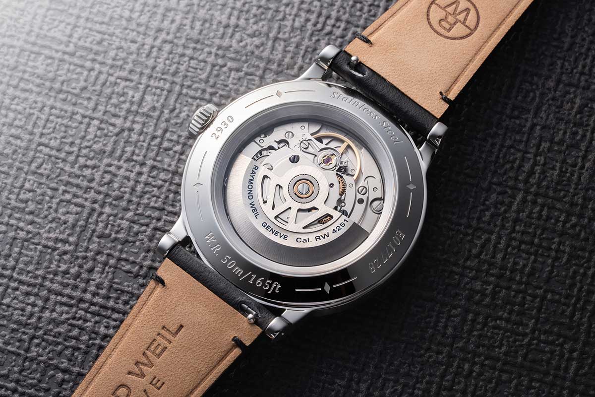 Per il Raymond Weil Millesime Small Seconds Tuxedo Dial, la manifattura ha scelto il calibro automatico RW4251, che è lo standard per la linea Small Seconds. È stato sviluppato da Raymond Weil sulla base del Sellita SW260-1. Secondo alcuni, invece, la base è il Sellita SW261-1. Si tratta comunque di movimenti molto simili, perché il pignone della lancetta dei piccoli secondi si trova in una posizione più alta o più bassa sul quadrante (meno di 1 millimetro) a seconda della versione del calibro. La posizione nel Raymond Weil Millesime Small Seconds Tuxedo Dial sembra essere quella dell’SW260-1.