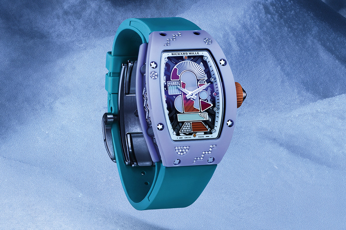 Richard Mille porta a compimento la trilogia dell’RM 07-01 Ceramiche Colorate con un’ultima, definitiva versione. Lanciata nel 2021, poi sviluppata nel 2023 con diversi look molto estivi, la collezione torna ora in chiave invernale: o forse dovrei dire “ghiacciata”, immersa com’è in un immaginario fatto di neve e luci crepuscolari. On the rocks, direbbero nel mondo della moda, in riferimento alla presenza dei diamanti che impreziosiscono l’intera cassa. Ed è proprio questo il problema: incastonare i diamanti nella ceramica, dal punto di vista teorico, sembrerebbe una follia. Praticamente impossibile.